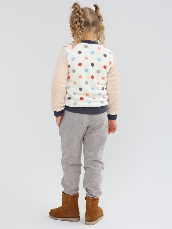 Het model op de foto is 122 cm lang en draagt maat 116-122.