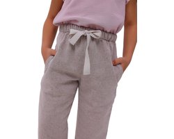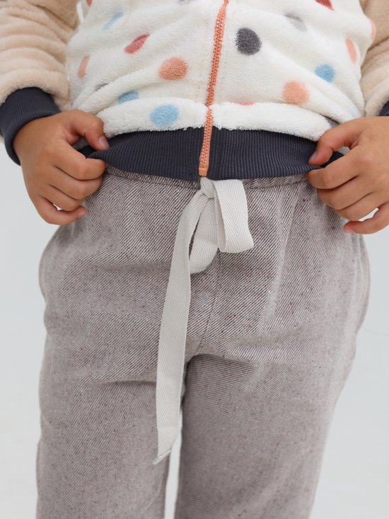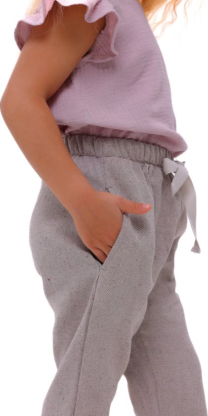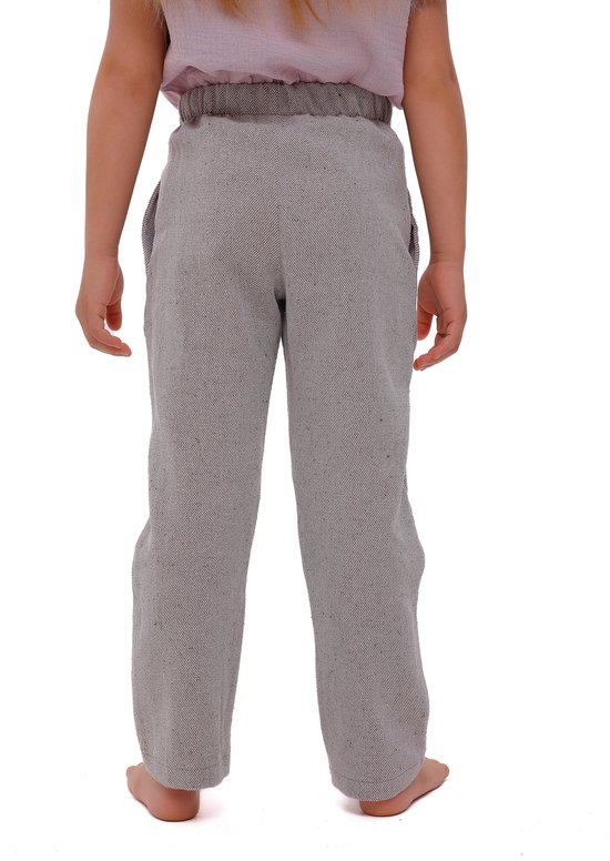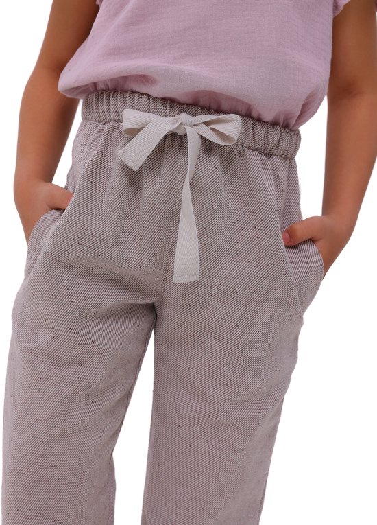 Deze meisjesbroeken in boho-stijl combineren een trendy ontwerp met comfort. Gemaakt van hoogwaardige katoenen stof waarin een witte en een lichtbruine draad in een visgraat patroon geweven zijn, lijken ze op stevige, onbewerkte stof die een minimalistische uitstraling biedt. De taps toelopende joggers met zakken zijn bijzonder populair bij tieners en kinderen.